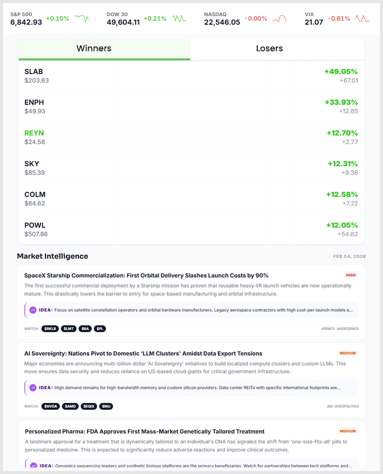 Our AI scans short-term market signals and ranks them by confidence score with clear explanations of exactly what to do next.